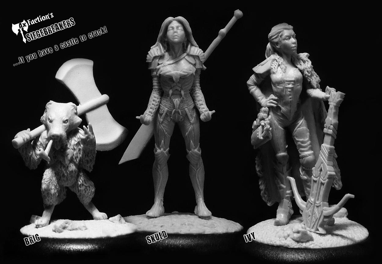 The first set in Ax Faction's Adventurer Series has arrived - The Siege Breakers! 3 Highly detailed resin miniatures, Brig, Skuld and Ivy are the people you need to call when something needs breaking.