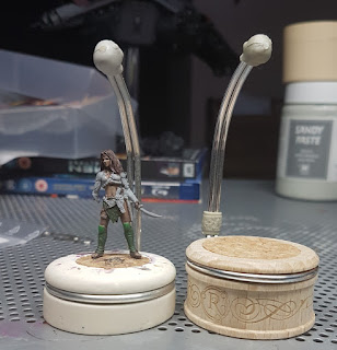 Prior to backing the Kickstarter, I'd already picked up a V2, which I've been using for the last 18 months or so and really like, so I'm excited to try out the new ones. A direct comparrison shows that the holder is much larger than previously, with a larger cork, allowing for a larger surface area to pin minis to. The metal holdy thing that you hold to stop yourself putting your fingers on the top of the mini has also changed out it's little metal ring that keeps it in place and exchanged it for a plastic lock, made from the same material as the skull on top.